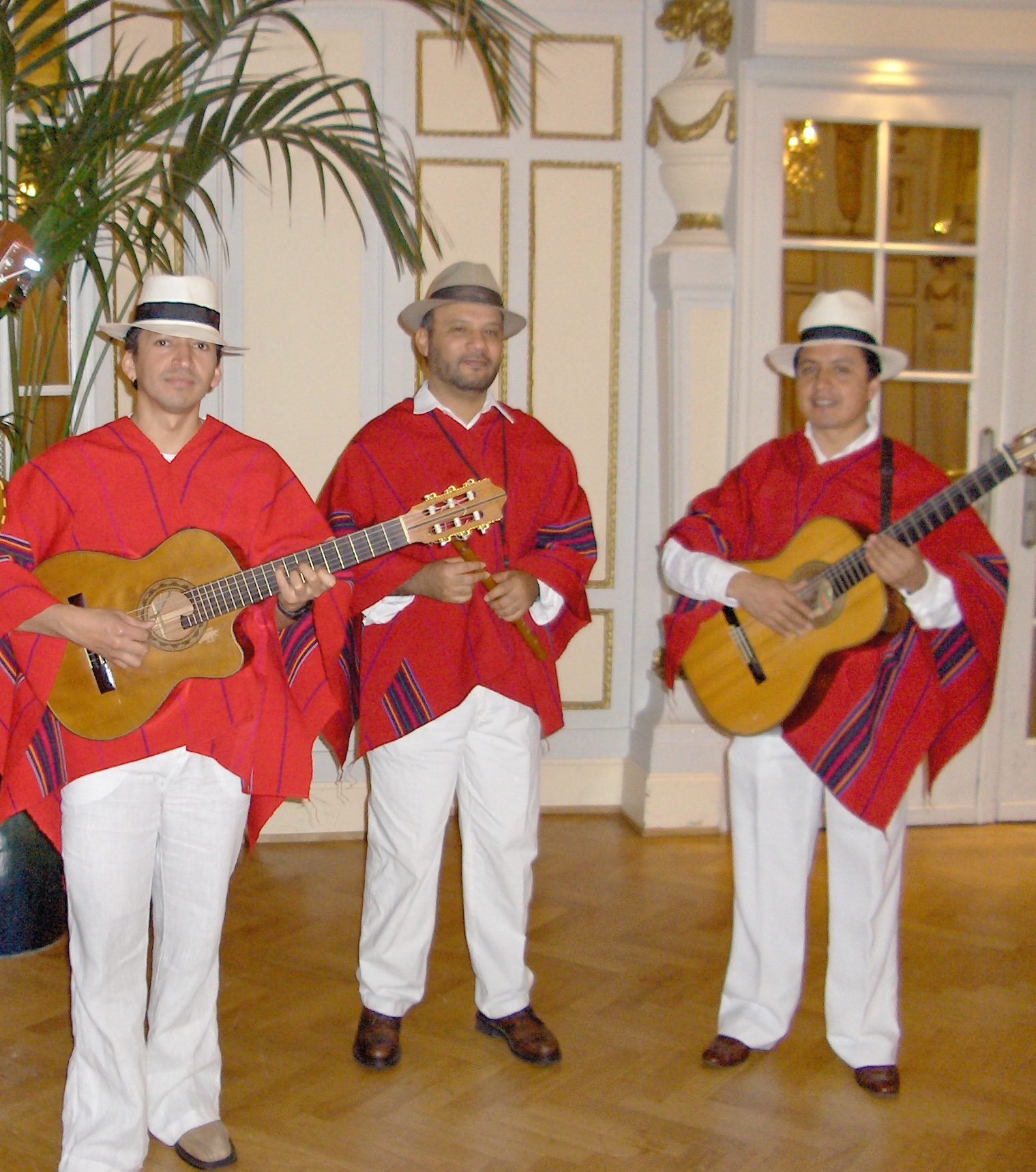 In our concerts, you will be able to enjoy the lively Mexican music from Huapangos. The profound soothing music from Los Andes, Ecuador, Bolivia, Peru, Chile ( San juanitos, takirari, albzos, cachullapi, cueca, etc.), the candent music from the Caribean Cuba, Colombia (son cubano, cumbia, etc.), the energetic music from Venezuela (joropo, pasaje, etc.), the vast folklore of Paraguay, Argentina ( polkas, argentinian zamba chacareras, etc.) Brasil (samba, bossanova, etc.).