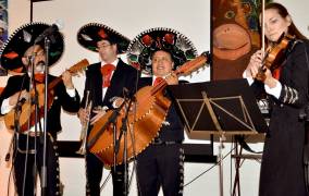 The Mariachi is a typical Mexican ensemble dating back to the early nineteenth century. Our Mariachi Fiesta Mexicana embraces the rich Mexican folklore of music and dance as well as the romanticism, temperament and passion of the people. Trumpet, violin, guitarron, guitar and vihuela are indispensable instruments in mariachi music and together with the voices of the singers and musicians, the authentic musical heritage of México lives on through the sounds of these mariachi.